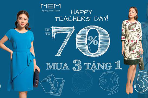 Chào mừng ngày nhà giáo Việt Nam 20/11, NEM áp dụng chương trình ưu đãi 50% – 70% kèm MUA 3 TẶNG 1 như lời tri ân sâu sắc.